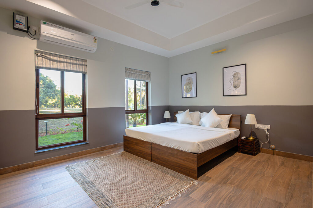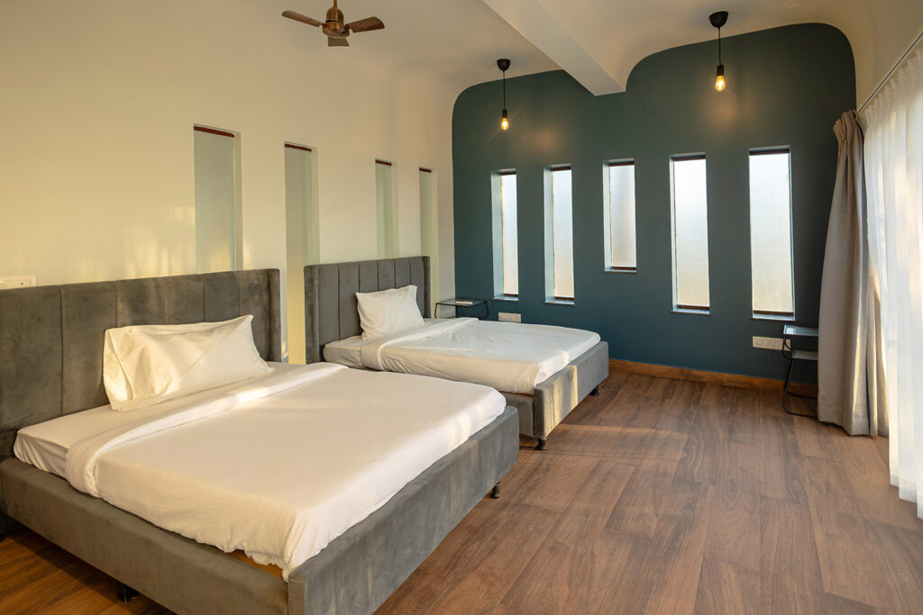 Quad Club offers a range of spacious rooms and suites, thoughtfully designed to blend comfort with understated elegance. Our accommodation starts at approximately 300 sq. ft., featuring plush bedding, modern bathrooms, and private balconies or sit-outs overlooking the gardens or pool. Whether you’re visiting as a couple, family, or small group, our team is happy to help you choose the perfect room configuration for your stay.